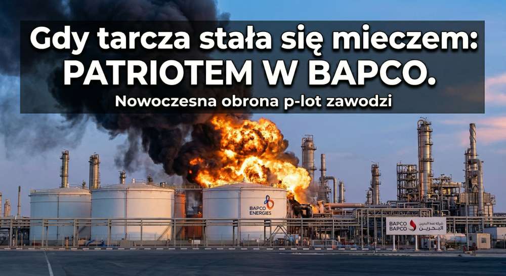 Światowe media i rynki surowcowe obiegła kolejna wiadomość z Bliskiego Wschodu. Następny epizod trwającego od końca lutego konfliktu zbrojnego między Iranem a Stanami Zjednoczonymi i Izraelem pokazał niezwykle brutalne oblicze technologicznych ograniczeń współczesnego pola walki. Pocisk przechwytujący systemu Patriot, zamiast zneutralizować nadlatującego irańskiego drona, chybił i uderzył bezpośrednio w infrastrukturę zakładów naftowych BAPCO na wyspie Sitra w Królestwie Bahrajnu. To wydarzenie nie tylko rzuca cień na skuteczność wielowarstwowych systemów obrony powietrznej, ale również uświadamia nam, jak wielkie ryzyko dla ludności cywilnej i krytycznej infrastruktury niesie ze sobą walka z z tanimi bezzałogowcami, o czym sami się przekonaliśmy w Polsce we wrześniu zeszłego roku.